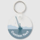Silhouette of dockyard cargo crane. Vector icon with customisable colour. Custom background colour. Custom text on both sides.