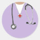 Creative doctor graduation envelope seals, party favour labels or gift stickers for medical school grad featuring lavender hospital scrubs.