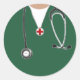 Creative doctor graduation envelope seals, party favour labels or gift stickers for medical school grad featuring green hospital scrubs and stethoscope.