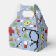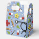 Creative medical-themed party favour box featuring hospital healthcare supplies and flowers pattern design for doctor, nurse, physician assistant or other medical professional's celebration.