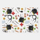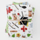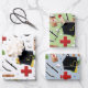 Creative doctor medical school graduation gift wrap design pattern featuring healthcare supplies and graduation caps.