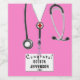 Medical School Graduation gift labels or grad party decoration featuring pink hospital scrubs. Edit text to add doctor or physician assistant's name and the year.