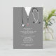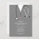 Creative medical school graduation party invites featuring hospital scrubs and stethoscope art. Edit text to create unique doctor grad party invitation or medical school graduate announcement.