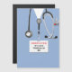 Creative medical school graduation card template for doctor grad, featuring hospital scrubs and funny Swiss Army knife. To personalise, edit text to add physician's name.