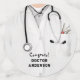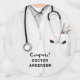 Creative healthcare party decoration for doctor or medical school grad celebration featuring doctor lab coat and stethoscope. To personalise edit text to add name of physician.