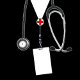 Creative medical-themed design for doctor graduation or birthday party, featuring black hospital scrubs. Edit text to personalise for your favourite physician.