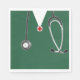 Creative doctor party or medical school graduation celebration napkins featuring green hospital scrubs and stethoscope.
