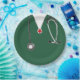 Unique medical school graduation or doctor birthday party plates featuring creative green hospital scrubs.