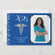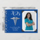 Celebrate the new doctor of medicine graduate from medical school with this silver and Blue medical caduceus graduation announcement! Elegant with a vintage photo border and silver confetti accents! Perfect for anyone graduating as an md or do with doctorate!