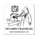 Doctor is using his stethoscope on a patient's feet. Funny cartoon to personalise with your name choice and contact information. Ideal to stamp your details on letters, envelopes, appointment cards, prescriptions, and leaflets etc.