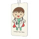A doctor complete with scrubs, stethoscope and doctors' coat done in a kawaii style. He also wears a super hero cape because doctors save lives and that makes them super heroes! The black text reads, "Doctors Are Super Heroes" on a customisable air freshener.