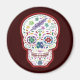 Trippy Day of the Dead skull, with multi-colour, psychedelic patterns & markings.
