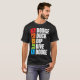 I give wanted to give this a 4 instead of a 5 because these Basic DARK T0shirts run unexpectedly SLIM or Narrow. Which is great if you do not have a potbelly, but I have a paunch. It isn't the shirt's fault that I've got a beer belly. The design and shirt itself is a quality cotton shirt. The color is more of a deep purple, but still a very pretty color. The Basic DARK T-shirts run a bit SLIMMER than the Basic Ts. The neck is a fraction narrower (or seems to be narrower) also. I'm a paunchy middle-aged woman and my neck is 12 inches (31cm) thick and the neckline fell about the same as in the photo of the man, and I had the desire to tug it a bit. So if you're a thick necked man or like loose shirts, be aware these are slimmer shirts. Once I get rid of my lockdown paunch it'll look great. The shirt washed well in cold water with no apparent bleeding. We don't have a dryer, so it hung dry. Did not shrink. Love the colors and the design. The design looks smaller on my shirt than it does on the model on-line. But still, it looks good on the shirt. The printing looks as it does on the model, just the size seems fractionally smaller. Washed garment in cold water, hung dry and design appeared unaffected.
