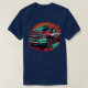 I give wanted to give this a 4 instead of a 5 because these Basic DARK T0shirts run unexpectedly SLIM or Narrow. Which is great if you do not have a potbelly, but I have a paunch. It isn't the shirt's fault that I've got a beer belly. The design and shirt itself is a quality cotton shirt. The color is more of a deep purple, but still a very pretty color. The Basic DARK T-shirts run a bit SLIMMER than the Basic Ts. The neck is a fraction narrower (or seems to be narrower) also. I'm a paunchy middle-aged woman and my neck is 12 inches (31cm) thick and the neckline fell about the same as in the photo of the man, and I had the desire to tug it a bit. So if you're a thick necked man or like loose shirts, be aware these are slimmer shirts. Once I get rid of my lockdown paunch it'll look great. The shirt washed well in cold water with no apparent bleeding. We don't have a dryer, so it hung dry. Did not shrink. Love the colors and the design. The design looks smaller on my shirt than it does on the model on-line. But still, it looks good on the shirt. The printing looks as it does on the model, just the size seems fractionally smaller. Washed garment in cold water, hung dry and design appeared unaffected.