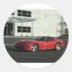 Red Dodge Viper RT/10 roadster in industrial setting.