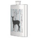 A black silhouette doe, birch trees, and pale blue sky flask.