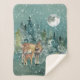 Doe and Fawn Deer in Forest Full Moon Snowfall Sherpa Blanket