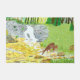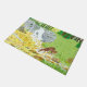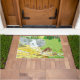 A doormat with a beautiful forest scene including doe and fawn drinking from a stream near a waterfall. Original artwork by W.B.