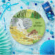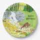 Paper plates with a beautiful forest scene including doe and fawn drinking from a stream near a waterfall. Original artwork by W.B.