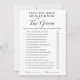 Introducing the "Does The Bride Really Know The Groom" Bridal Shower Game Card by CaMiDesigns. This minimalist black and white game card adds a touch of elegance to your bridal shower festivities while providing a fun way to test the bride's knowledge of her groom. Perfect for creating memorable moments and laughter among guests, this game is a delightful addition to any celebration.