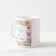 This mug has a different front and back. One side reads "Does this ring make me look engaged?" A cute blush design with modern luxury calligraphy design featuring a gold diamond engagement ring on a blush pink background. The other side features a pretty floral frame surrounding the quote "Future Mrs" and your married name. A cute gift for the soon to be bride.