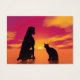 Black silhouette of a cat next to dog sitting and looking at the beautiful red sunset