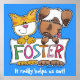 Cute dog and cat holding a banner that says FOSTER. Great for animal rescue facilities to remind the public to foster pets because it helps them out. Original design by Christie Black of Creations from the Heart.