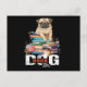 A dog is perched atop an open book, looking intently at the pages. Below the book sits a steaming cup of coffee, adding a cosy, studious ambiance to the scene. The dog's curious expression and the warm drink suggest a moment of calm and focus, perfect for a relaxing reading session.