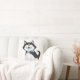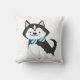 Do you have a love for dogs? This pillow needs to be in your space then. A cute black and white dog with blue eyes will make you say, "awww". He is also looking daper in his blue and white striped bow tie. The back is done in a blue solid colour.