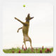 Dog catching tennis ball in mid-air square sticker