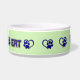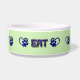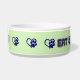 Serve your pet in style with this pet ceramic food bowl. It features some blue paw print hearts and the word "Eat" in navy blue colour, against a sage green background. It's not only stylish but microwave and dishwasher safe too.