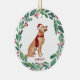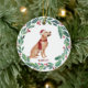 Decorate your tree or give a special gift this holiday season with this elegant Merry Christmas golden retriever in a wreath design christmas ornament, and matching decor. This golden retriever christmas ornament features a watercolor dog in a green and red wreath with holly and berries. Personalize with name front, year back. This golden retriever christmas ornament will be a favorite among golden retriever lovers, dog lovers, and animal lovers. Visit our collection for matching golden retriever christmas cards, home decor, and gifts. COPYRIGHT © 2020 Judy Burrows, Black Dog Art - All Rights Reserved. Dog Christmas Custom Pet Holiday Golden Retriever Ceramic Ornament