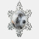 Pewter dog Christmas ornaments in a shape of snowflake with your custom photo and text - you can add your dog's photo and name. It measures 3 inches by 3 inches and weights 1.5 ounces. You can find similar design with personalised photo and text on other ornaments too - ceramic, metal premium square or on ceramic ball ornament.
