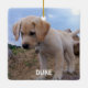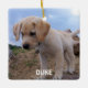 Dog Christmas ornaments with your personalised text and photo - you can add your dog's photo and name. It measures 2.87 inches by 2.87 inches and weights 1.4 ounces. You can find similar design with personalised photo and text on other ornaments too - metal premium square, pewter snowflake or on ceramic ball ornament.