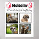 Celebrate your best friend with a custom Photo Collage poster. When you have so many fun memories and photos, one photo isn't enough. This poster has 4 photos, a quote, and you can personalise the name of your pet. You can also change the colour of the paw print. To customise, you can change the colour and font, enter your own quote, and upload your own photos or even change the background colour. Whether you have a new puppy, or you just want to memorialise all your special moments, every dog deserves a personalised family keepsake.