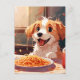 A fluffy white Dog , dappled with brown spots, dives headfirst into a mountain of spaghetti. Tomato sauce splatters across its fur and the white tablecloth in a delightful mess. Rendered in a stunning, masterfully balanced composition (think golden ratio!), the illustration evokes the detailed, yet whimsical