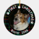Commemorate a puppy's or dog's First Christmas with two photos on the double-sided keepsake ornament shown featuring a multi-coloured black plaid background and a place to add your personalised text on the front. The back side features a full-bleed photo. (PHOTO TIP: For fastest/best results, choose a photo with the subject in the middle and/or pre-crop your image to a square shape BEFORE uploading it and it will fill in the photo space provided perfectly.) The text font style, size and colour can be changed by clicking on the "Click to customise further" tab. OTHER STYLES: Note that other ornament styles to choose from on the ordering page may not offer back side printing. Contact the designer if you'd like this design on another item.