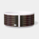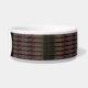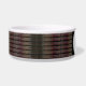 Dog food bowl made of white ceramic has an interesting black pattern as a background for your dogs name. HAMbyWhiteGlove.