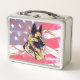 Dog German Shepherd with USA Flag Design Metal Lunch Box