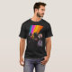 I give wanted to give this a 4 instead of a 5 because these Basic DARK T0shirts run unexpectedly SLIM or Narrow. Which is great if you do not have a potbelly, but I have a paunch. It isn't the shirt's fault that I've got a beer belly. The design and shirt itself is a quality cotton shirt. The color is more of a deep purple, but still a very pretty color. The Basic DARK T-shirts run a bit SLIMMER than the Basic Ts. The neck is a fraction narrower (or seems to be narrower) also. I'm a paunchy middle-aged woman and my neck is 12 inches (31cm) thick and the neckline fell about the same as in the photo of the man, and I had the desire to tug it a bit. So if you're a thick necked man or like loose shirts, be aware these are slimmer shirts. Once I get rid of my lockdown paunch it'll look great. The shirt washed well in cold water with no apparent bleeding. We don't have a dryer, so it hung dry. Did not shrink. Love the colors and the design. The design looks smaller on my shirt than it does on the model on-line. But still, it looks good on the shirt. The printing looks as it does on the model, just the size seems fractionally smaller. Washed garment in cold water, hung dry and design appeared unaffected.