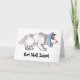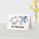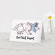 A grey and white spotted dog isn't feeling so well, and is wearing a blue cone to help her recover. Send this card to a friend to show you're thinking of them - or their pet - while they rest and get better!