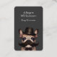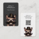 Funny and cute, this dog groomer business card will catch anyone's attention. Add your details to the QR code template. Featuring a smart french bulldog with a magnificent moustache, wearing a bowler hat on a smart grey background.