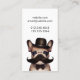 Funny and cute, this dog groomer business card will catch anyone's attention. Featuring a smart french bulldog with a magnificent moustache, wearing a bowler hat.