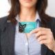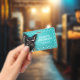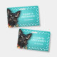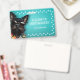 A cute black miniature schnauzer on bright turquoise with a white paw print border, this dog groomer business ID badge is a fun way to identify our personnel.