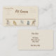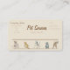 Dog walking, pet sitting, vet care, pet grooming, all these services and other pet services are covered by this original business card. On the front of the customisable pet care card you'll see five small original paintings of a white american bull dog, a tan mixed breed German shepherd/labrador cross, a ginger tom cat and a grey stripy kitten. The text is customisable for you to add all your own business details. On the back to this unique business card is more customisable space for you to enter more information by hand for your customers if you wish to.