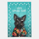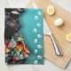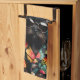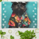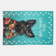 A cute black miniature schnauzer on bright turquoise accented with paw prints, this dog grooming towel is fun for your business and employees.