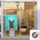 A cute black miniature schnauzer on bright turquoise with a white paw print border, this dog grooming business window decal - in lots of custom sizes - is a fun way to display your business information.