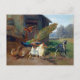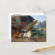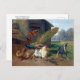 A postcard with the painting by Carl Jutz (1838-1916), The Dog in the Chicken Coop (1872). A colourful landscape with a peacock, chickens and a greyhound dog in front of the chicken coop on the farm.