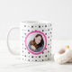 Introducing our Dog Pet Monogram Photo Paw Print Hot Pink Coffee Mug on Zazzle! This charming and customisable design features a hot pink photo frame and monogram on a background adorned with an adorable black and white paw print pattern. Perfect for dog lovers, you can personalise it with your favourite photo, monogram, and name. Make it uniquely yours by easily changing the photo and text to match your style. This design adds a personal touch to your coffee mug, making it an ideal gift for any pet parent.