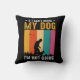 Vintage style dog lover throw pillow features a silhouette of a man and his dog with text that reads If I Can't Bring My Dog I'm Not Going! This is a great gift for a dog lover!